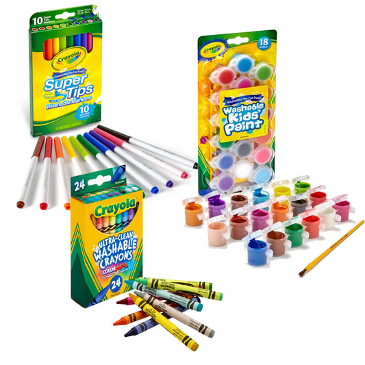 Crayola 18ct WS Kids Paint + 10ct Supertips + 24ct WS Crayons