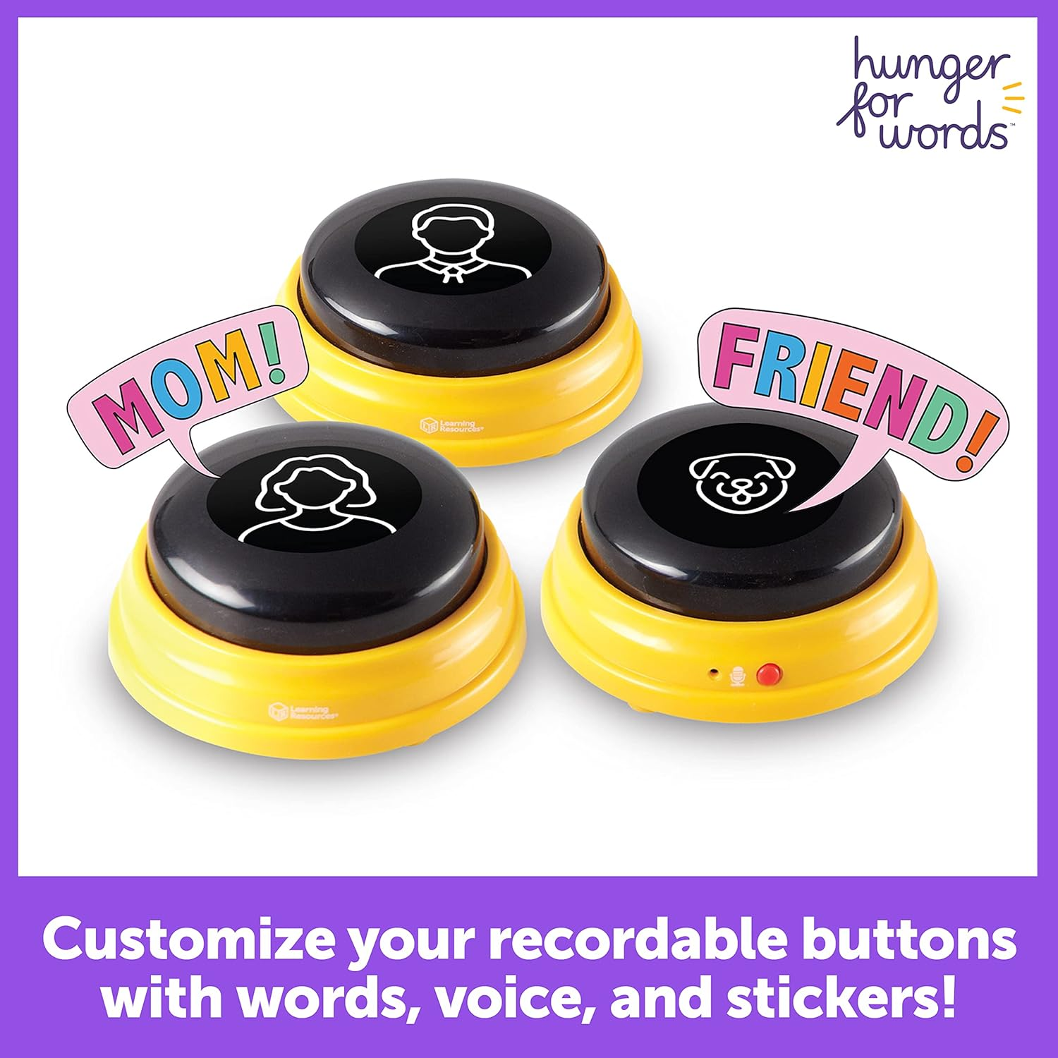 The Hunger for Words Talking Pet Next Words: Names Buttons – the next step to bridge the communication gap between you and your furry friend. Designed for ease of use, these talking dog buttons empower your pet to express their needs, feelings, and thoughts in a way that’s both fun and educational.