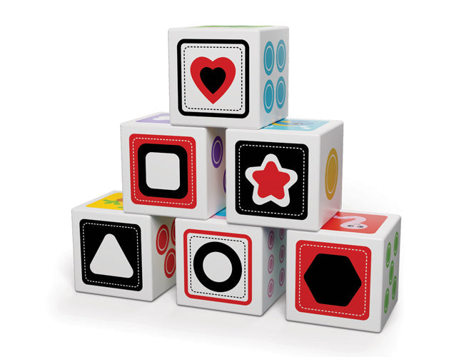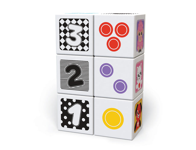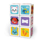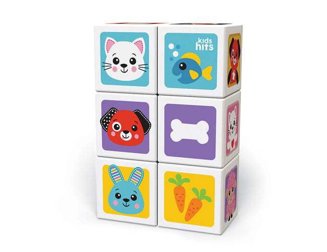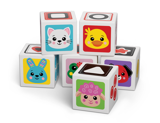 The set can be used as a stacker or matching game: six cute animals, numbers and shapes - amazing fun on each side of the cubes! 100% eco-friendly!