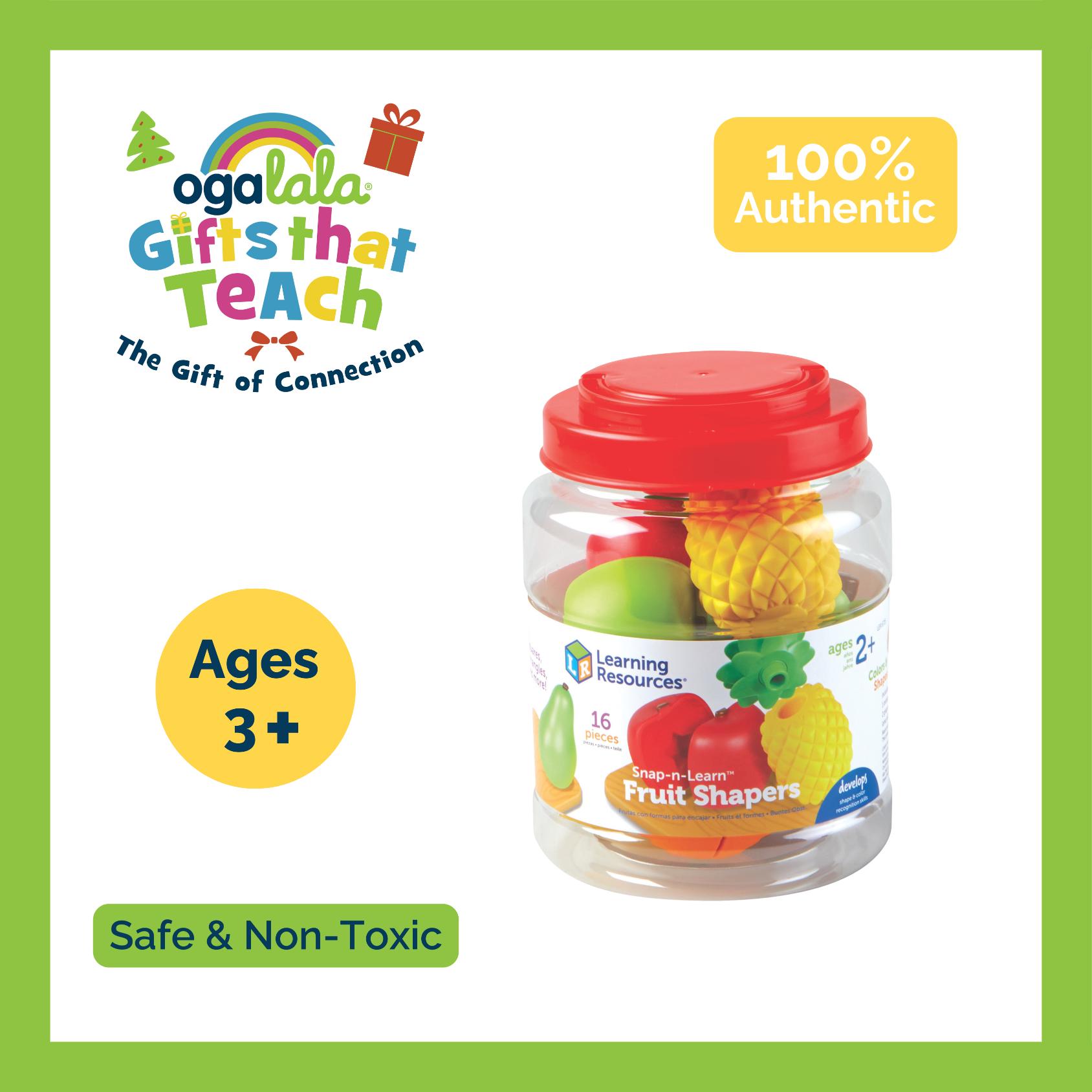 Dig into this preschool skill-building fruit fiesta! Whether they're learning in the classroom or through homeschooling, toddlers learn new shape and color skills every time they snap with this set of Snap-n-Learn Fruit Shapers. An imaginative entry in our popular Snap-n-Learn line of preschool toys, these fun two-piece fruits come with a cool snap-apart, push-together action that helps little hands build essential coordination and other fine motor skills. You can even make up your own fine motor game or learning activities!