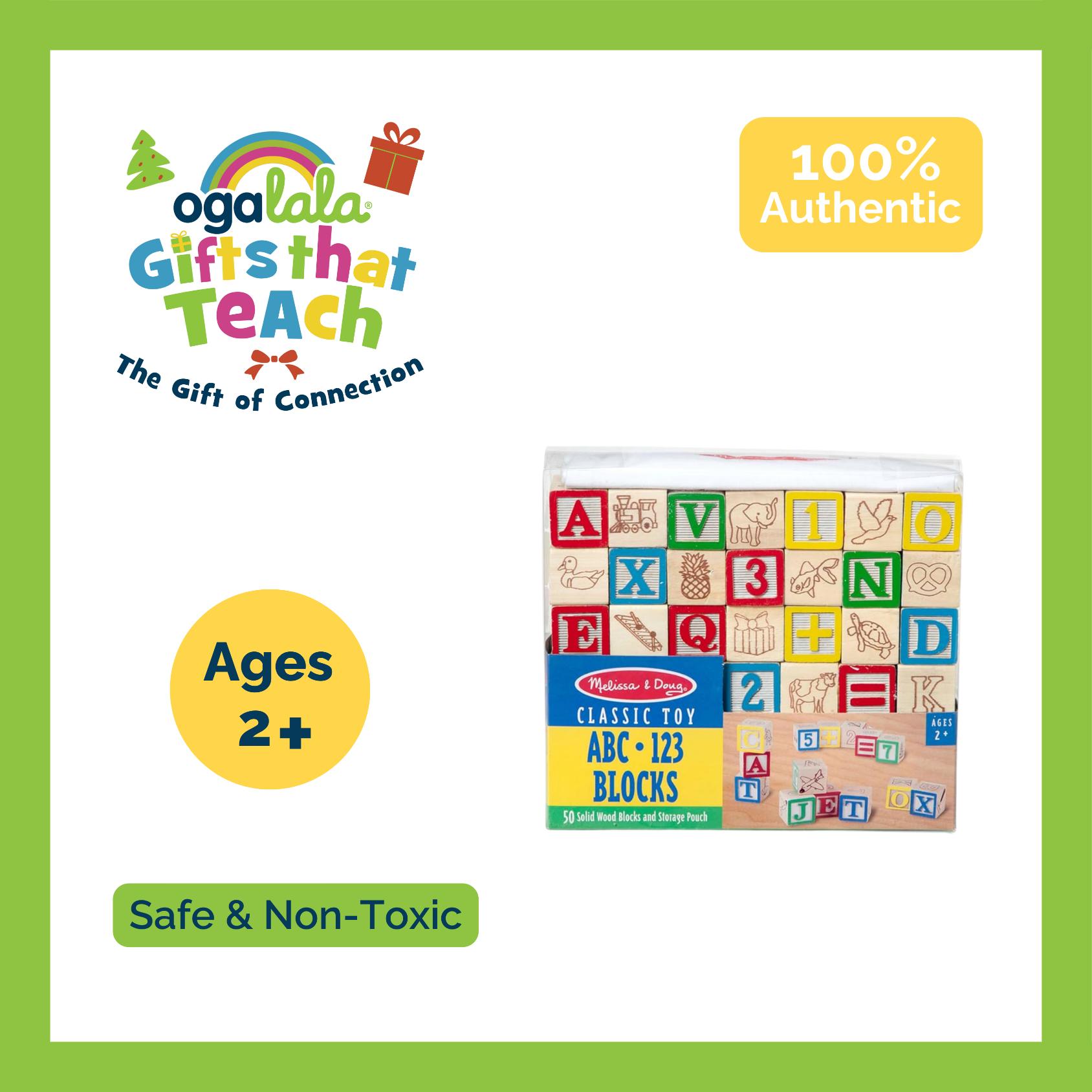 Solid wood blocks with a colorful collection of pictures, letters and numbers encourage matching, stacking, sequencing and sorting.