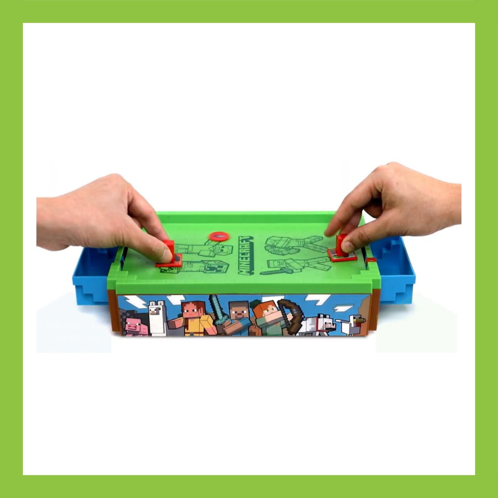 Perfect for kids and fans ages 6 and up, the set includes two Minecraft-style pushers, two themed pucks, and goal nets for head-to-head action. The compact design makes it great for bedrooms, game rooms, or even travel.