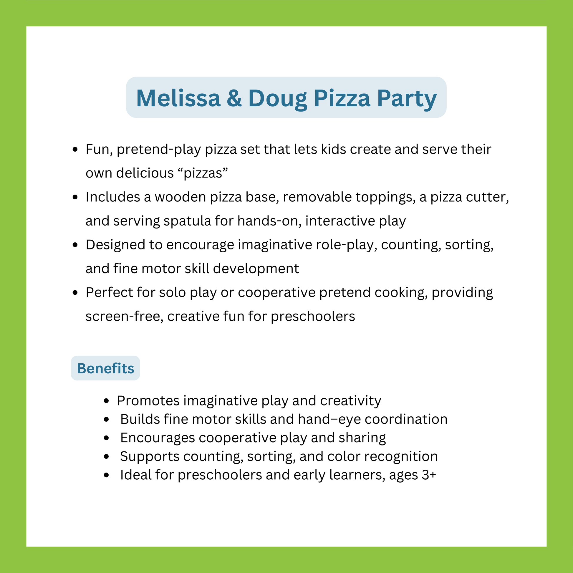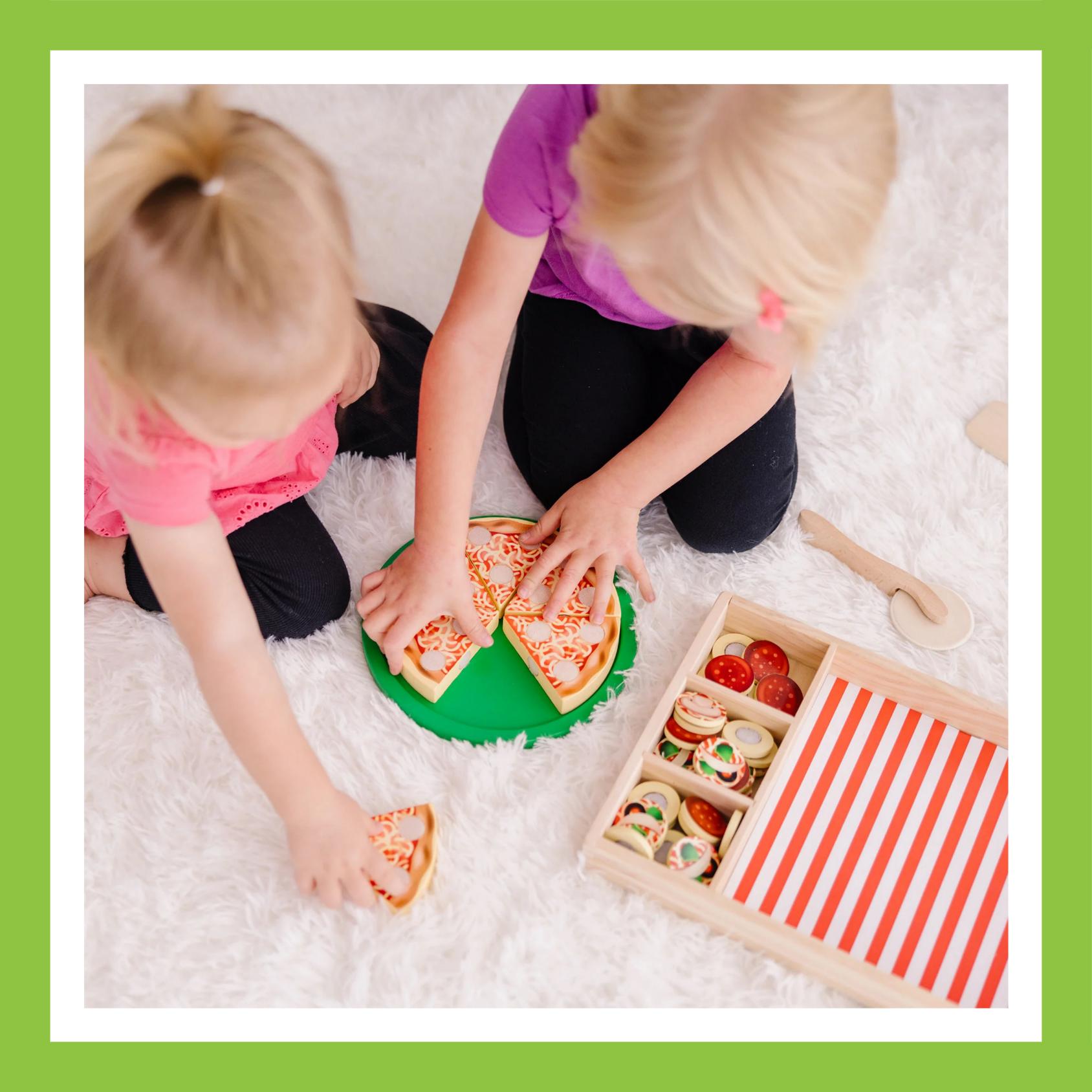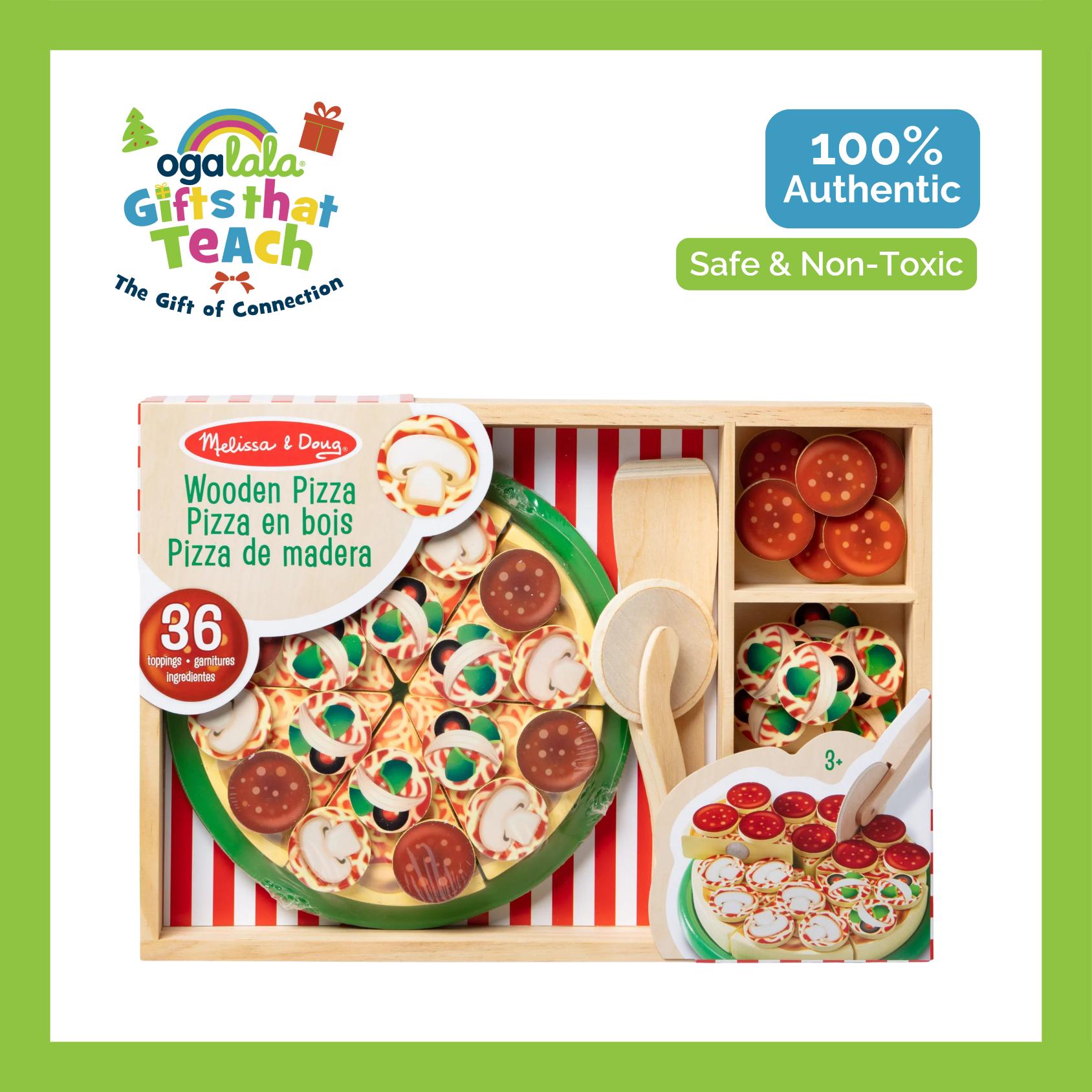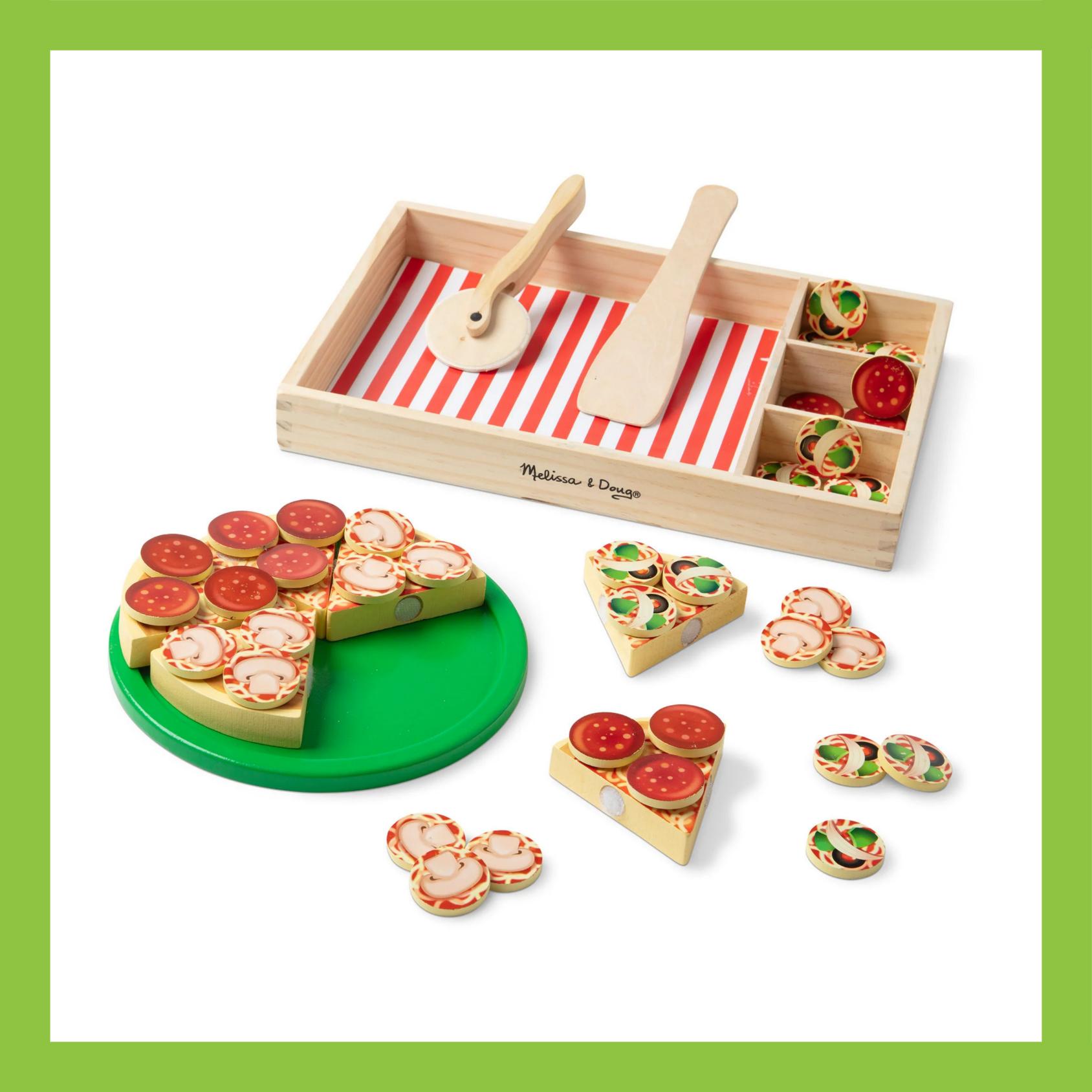 Young pizza chefs will shout "Mamma mia!" when they see the 54 toppings that come with this wooden pizza set! Then they'll get busy topping, cutting, and serving up six custom slices for their happy customers.