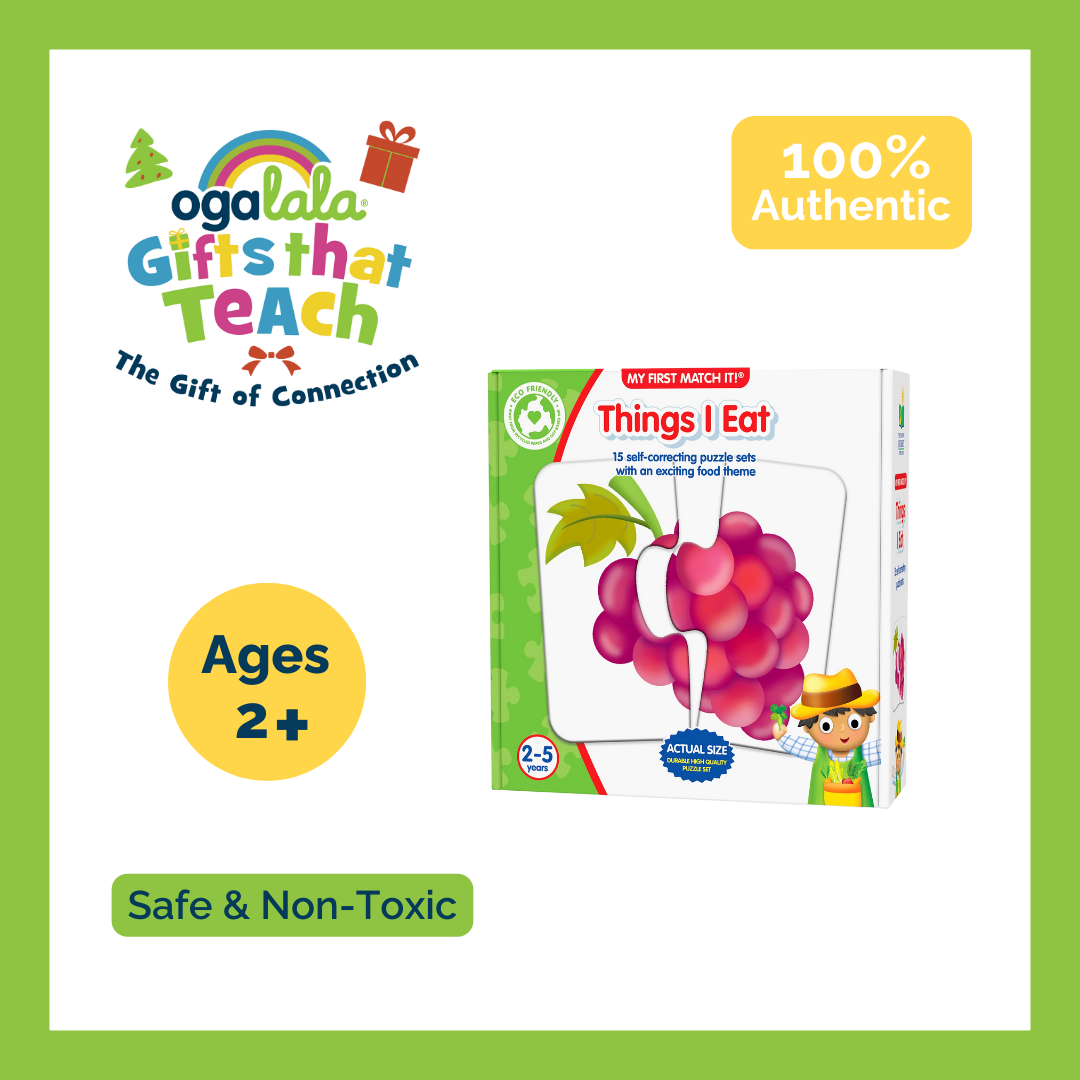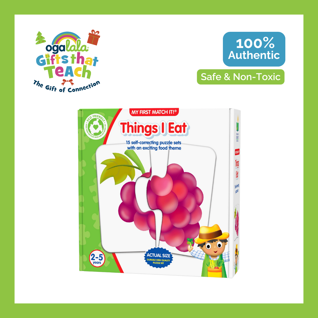 Things I Eat includes 15 self- correcting puzzle pairs. Ages 2+ years.