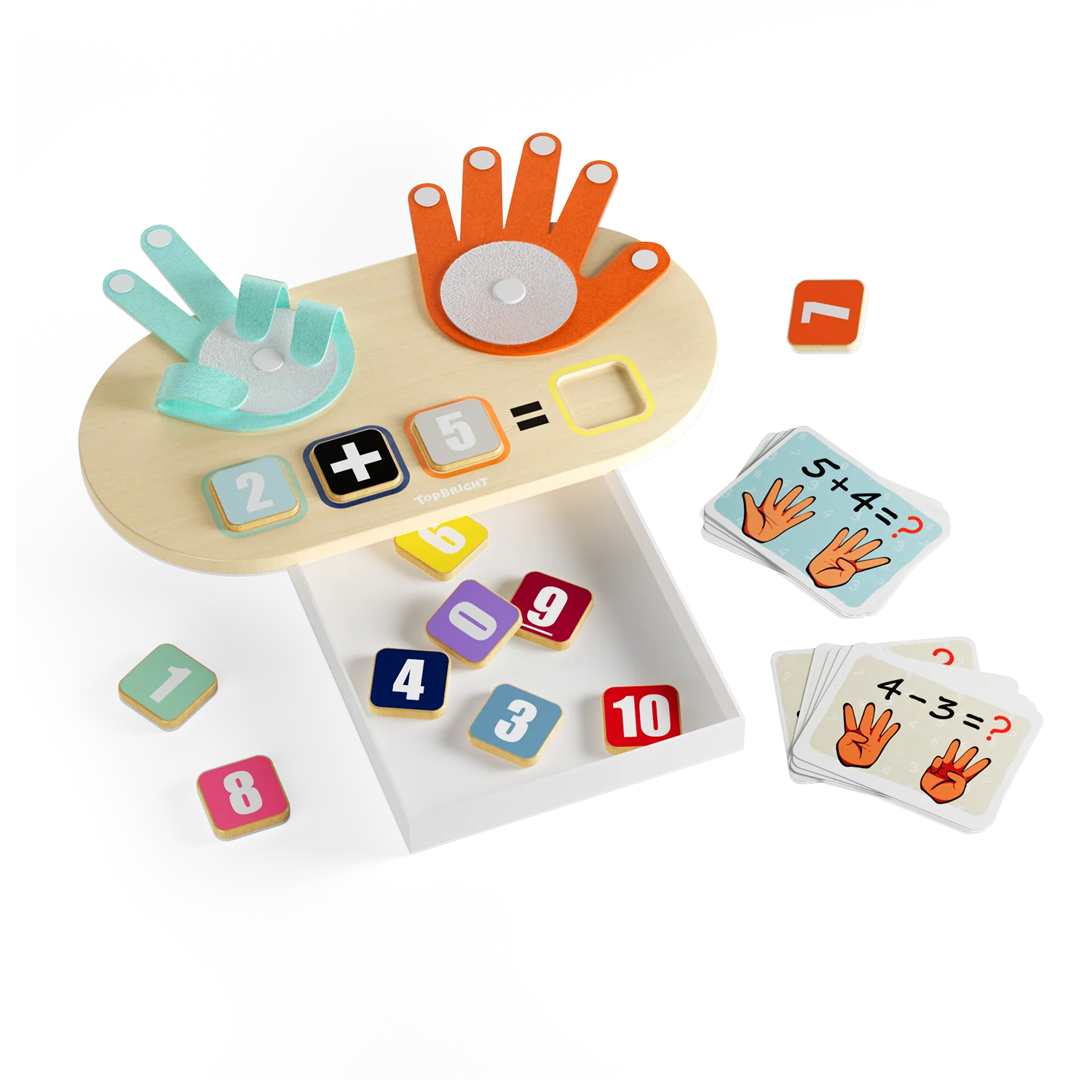 Equipped with 10 double-sided learning flashcards, this educational toy helps children grasp the concepts of addition and subtraction. By using the number blocks along with the flashcards, children can physically manipulate numbers, making these basic arithmetic principles more tangible and understandable. Fine Motor Skill Development