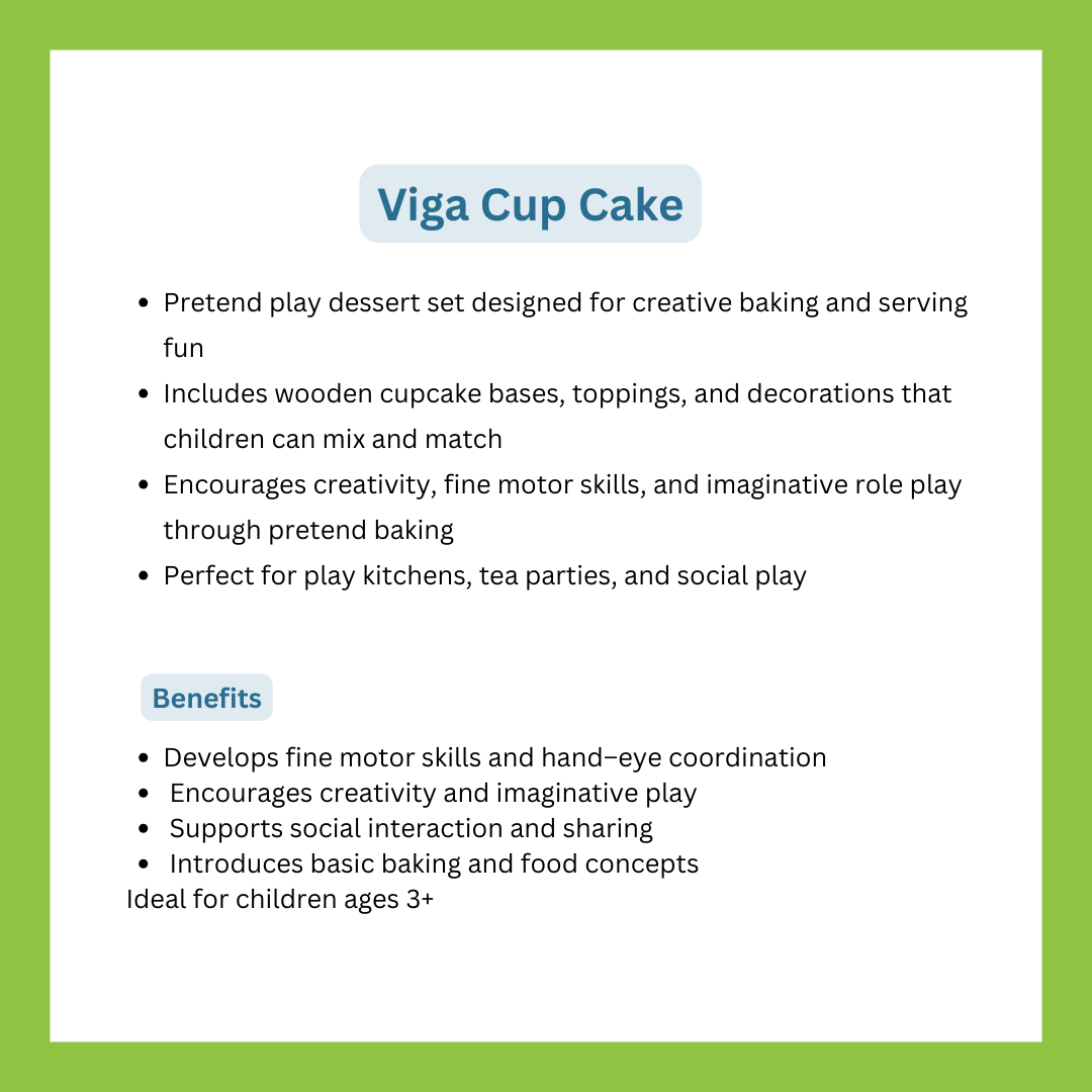 VIGA-PLAYING FOOD - CUP CAKE 50808Set includes 4 velcro-attachable cupcakes.