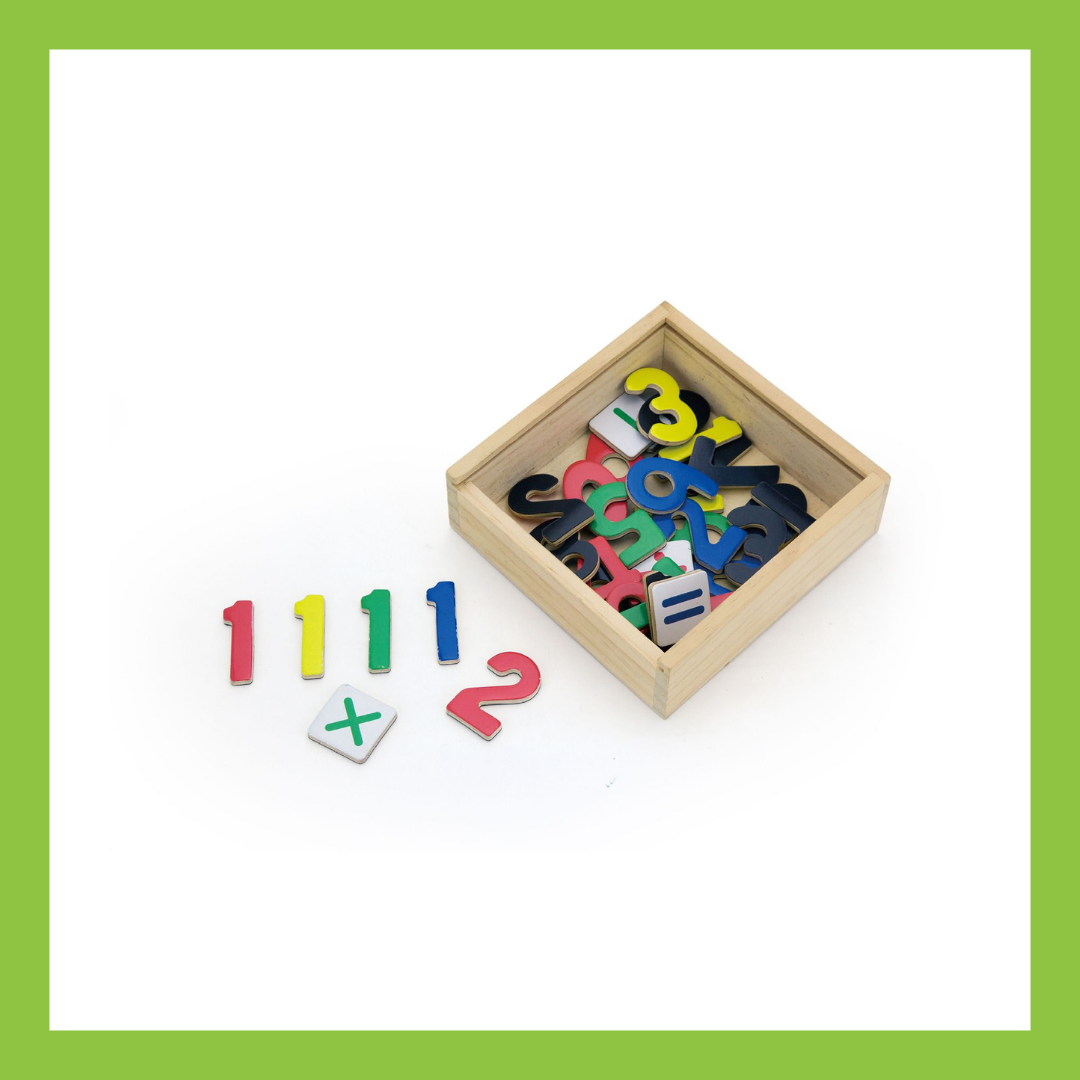 Viga Magnetic Numbers  brightly coloured magnetic numbers and maths symbols in a handy wooden case.